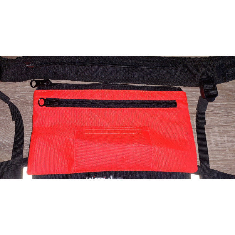 Grande poche pour smartphone ou gels et barres énergétiques, et petite poche pour mettre une clé et ne pas rayer le téléphone. AMOVIBLE par simple ZIP!