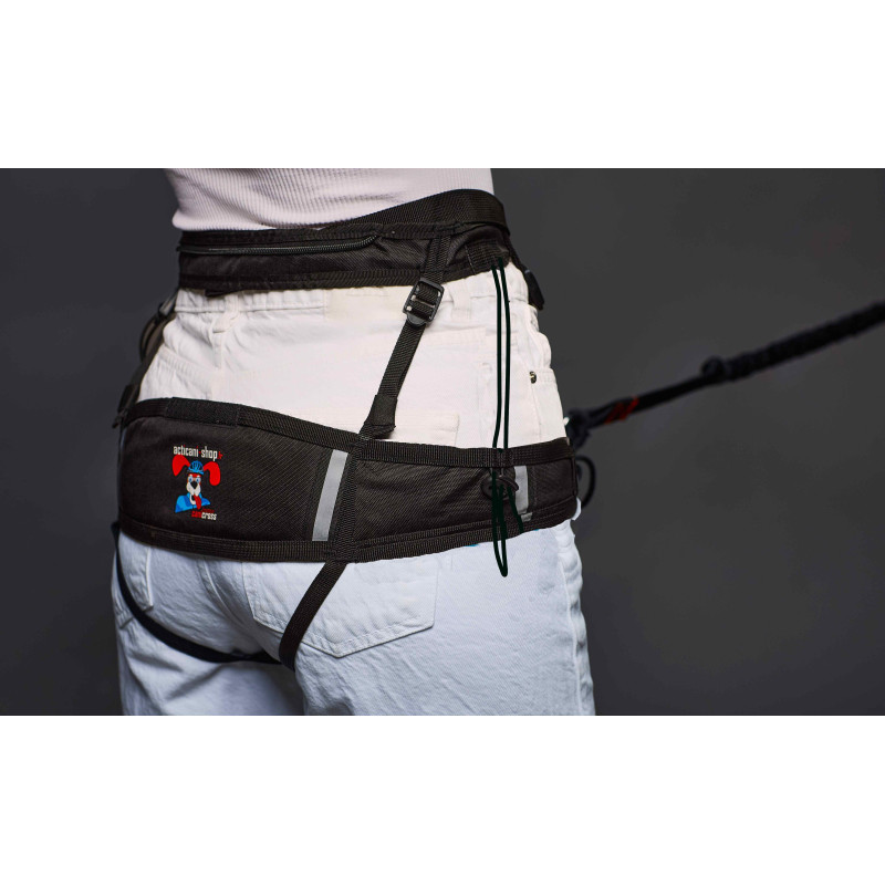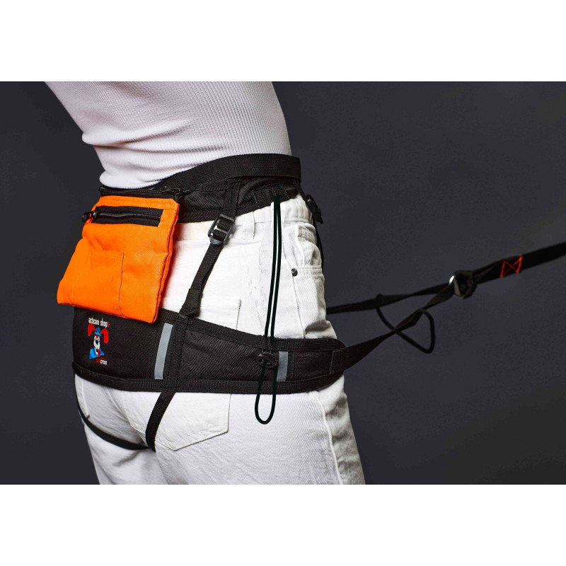 Baudrier Acticani Forest léger, avec une grande poche amovible, pratique, stable et qui ne tire pas dans le dos! Ligne de trait amortie Strike S ou M selon le poids et la traction du chien!