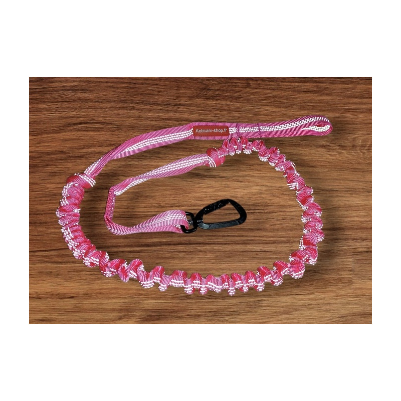 130cm au repos, 180cm tendue en traction en comptant le mousqueton alu.