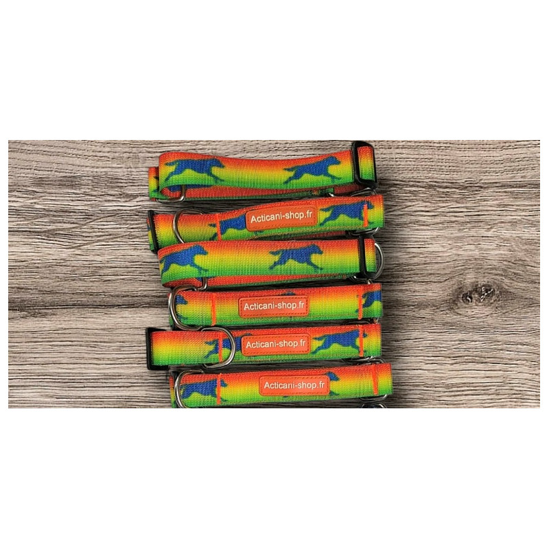 Collier simple réglable en couleurs dégradées avec un chien qui court